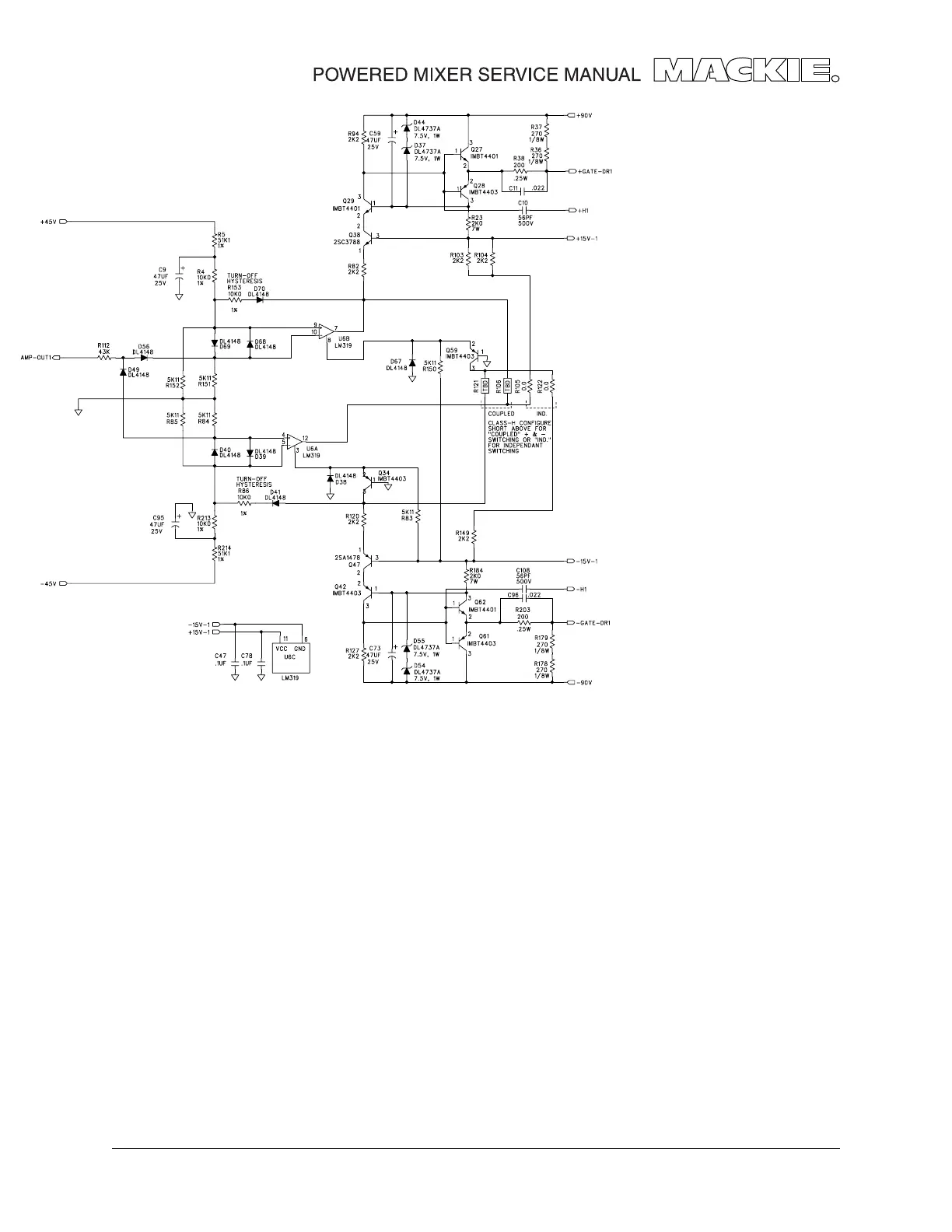 stage Q27/Q28. This follower can swing as much as 15V below the +90V rail, limited by