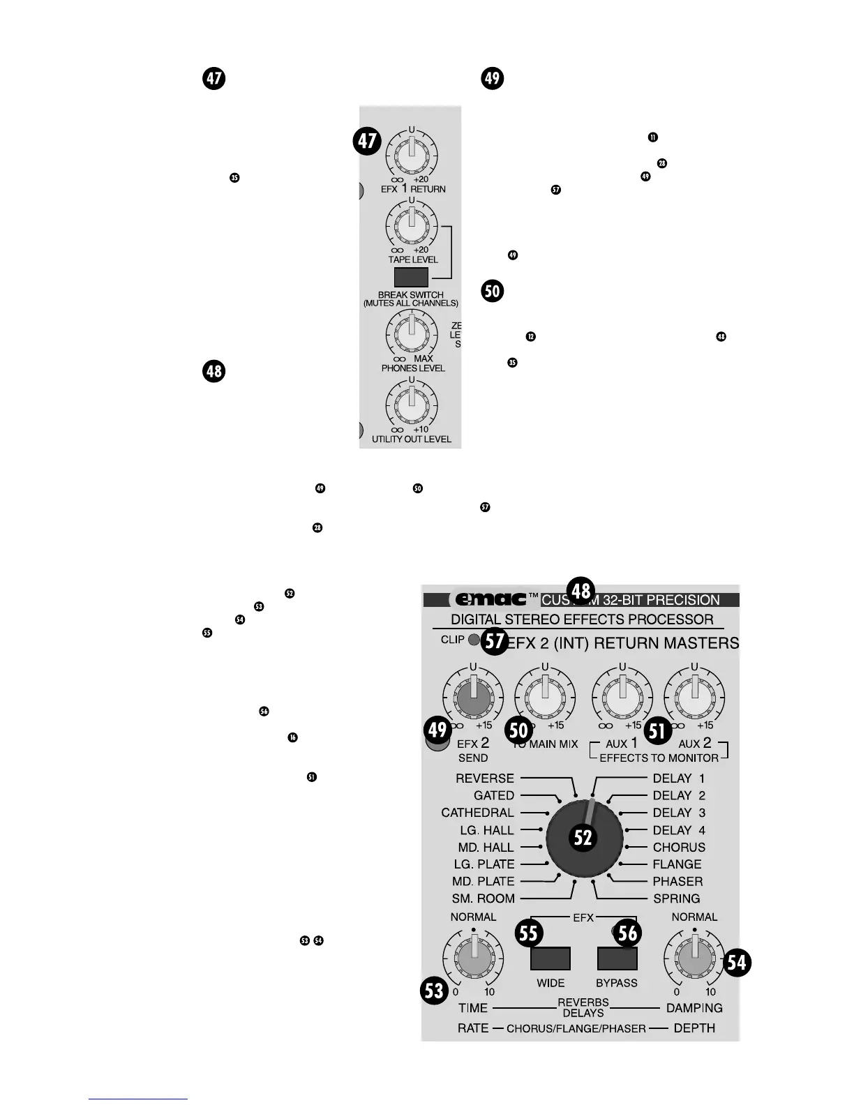 Effektmischung mit Hilfe der EFX 2 SENDs der Kanäle