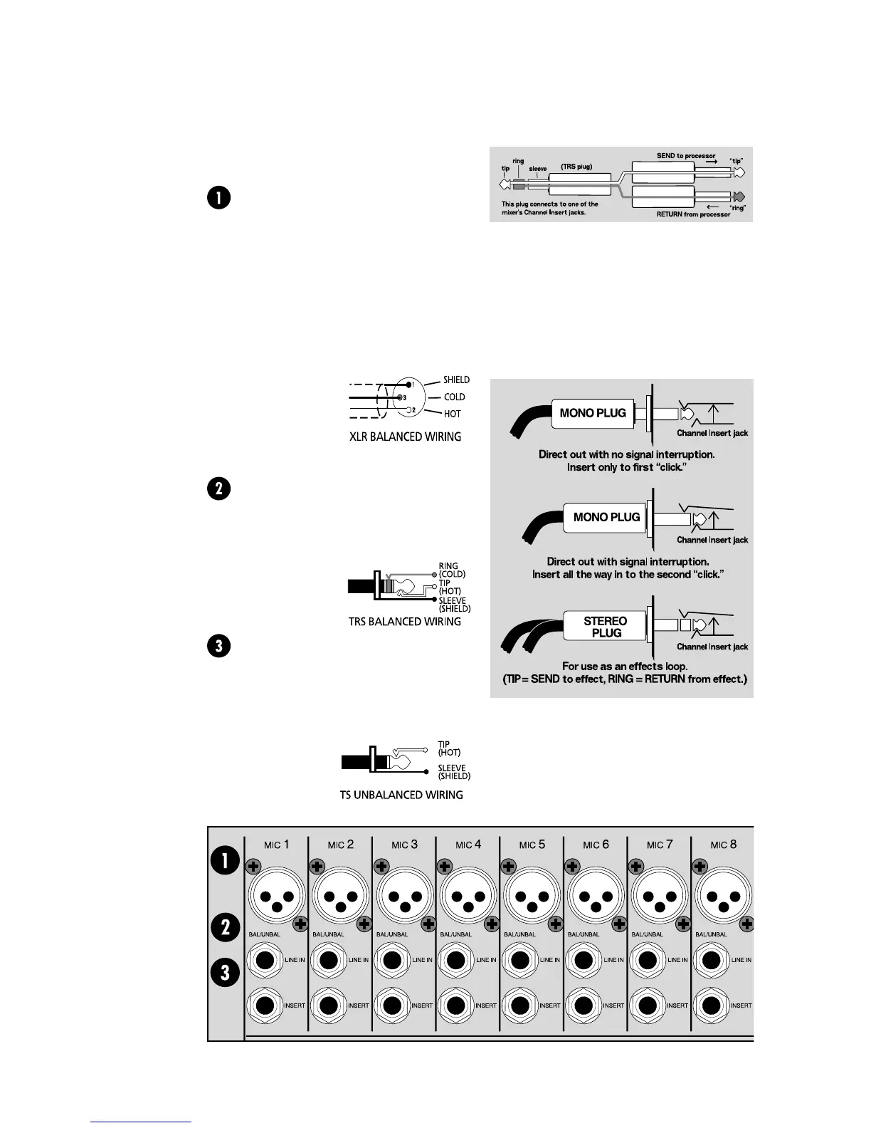 wie die Mikrofon-Eingänge, jedoch ohne die Phantom-