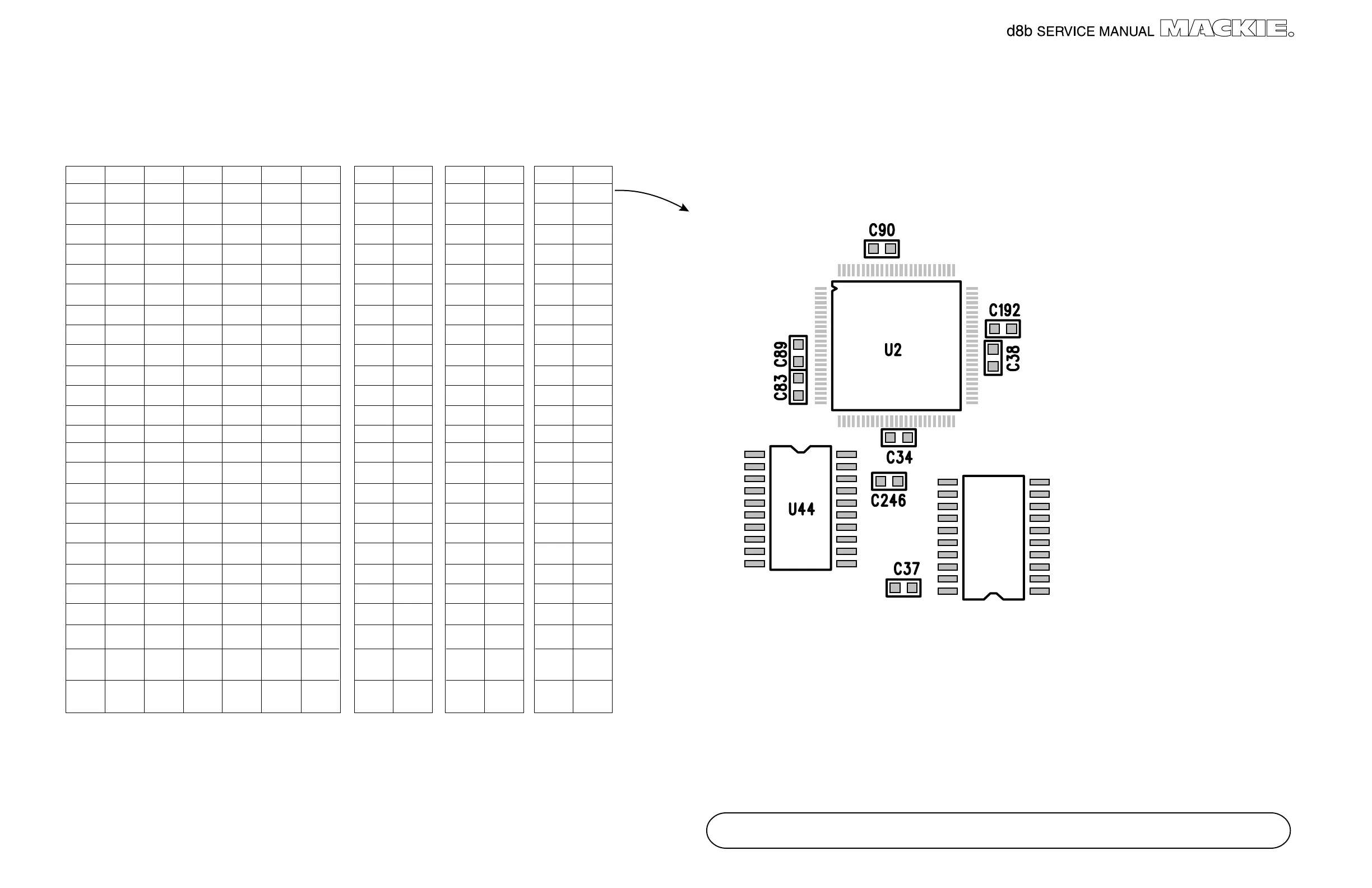 The portion of the PCB shown on this page is for U2, U44 and U26. The caps are grouped in the same pattern