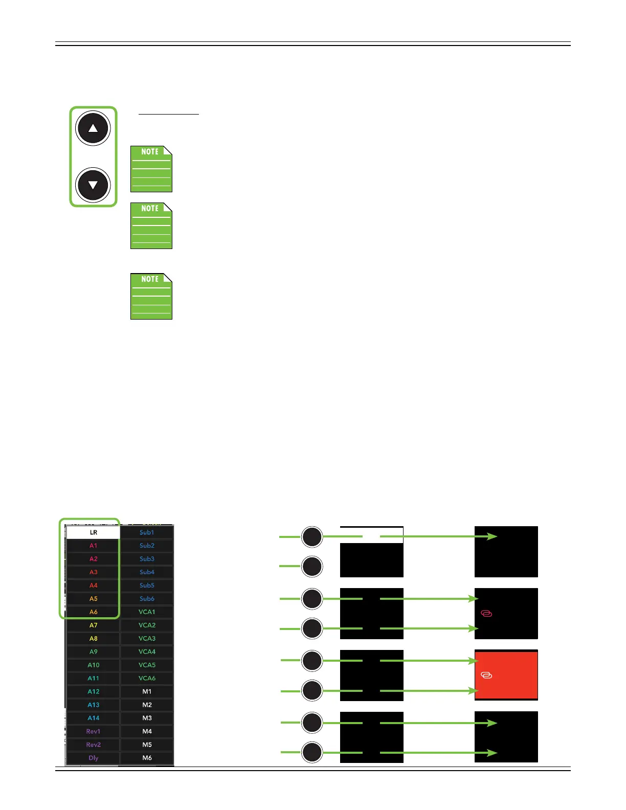 the mixes list (or in masters mode in which case neither arrow button LED will illuminate).