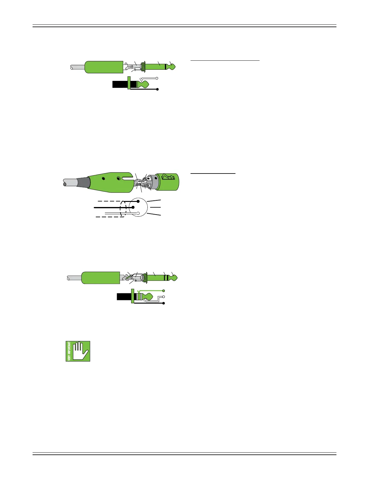 To connect unbalanced lines to these inputs, use a /4" mono (TS) phone plug, wired as follows: