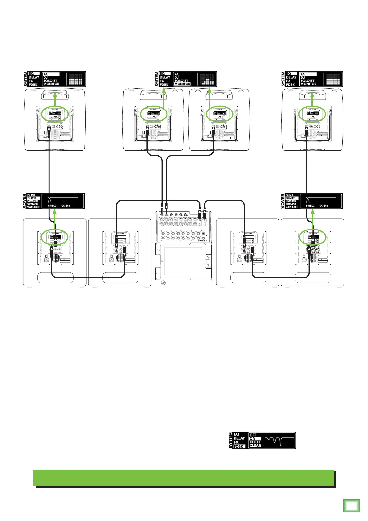 Here’s how to set up a large club system using all Mackie gear. In this example, the L/R outputs of