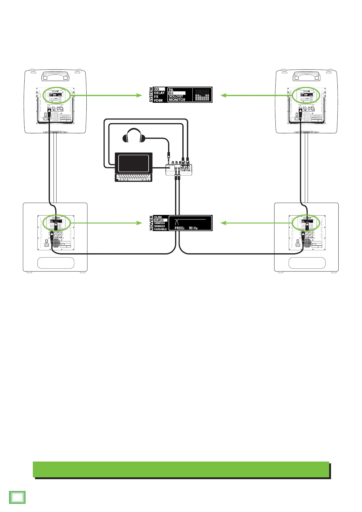 For this type of setup, we recommend selecting either the PA or DJ speaker mode. The DJ speaker mode