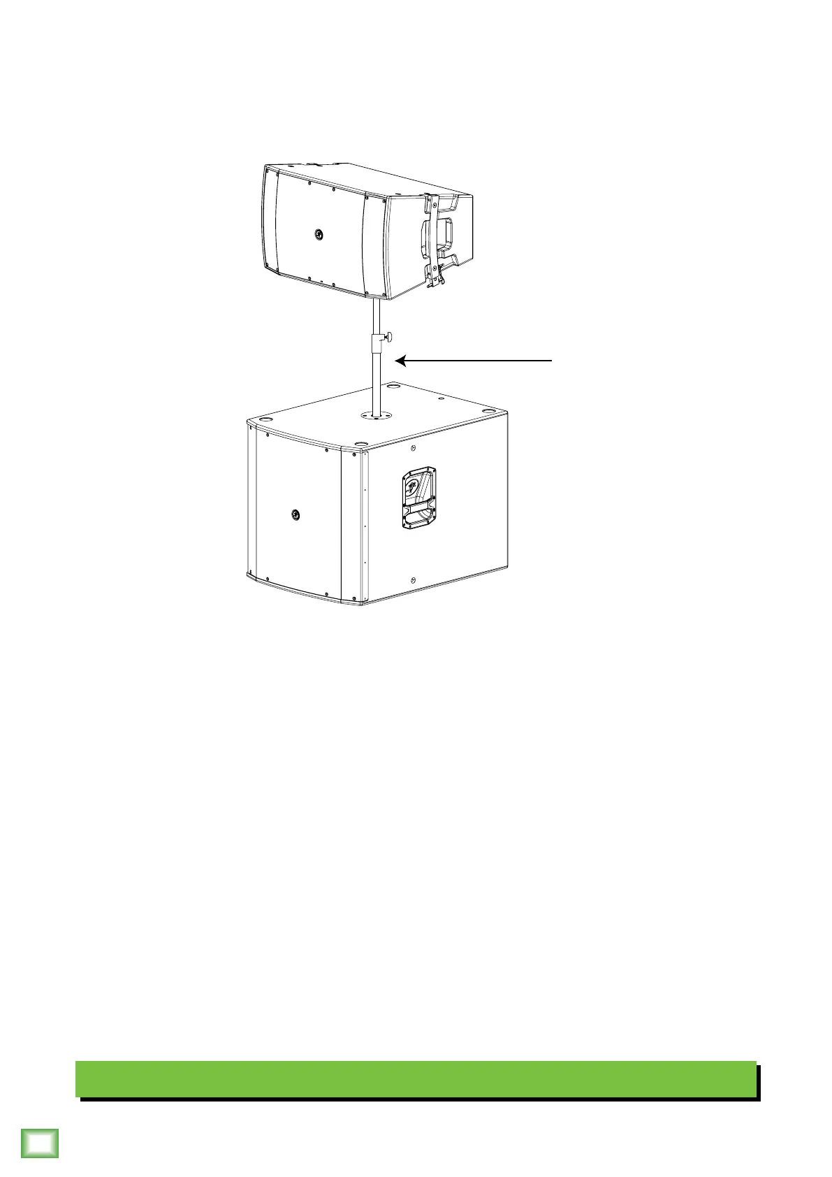 pole-mounted on a subwoofer, utilizing an SPM400 adjustable pole. Refer to page 22 to view a table listing other