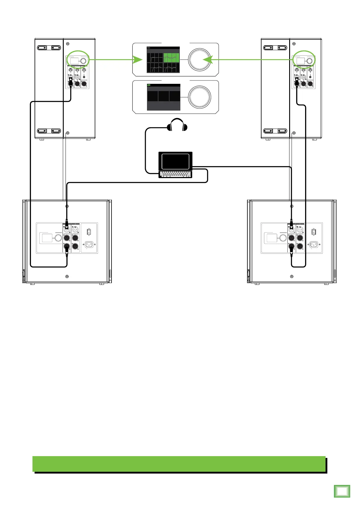 The High-Pass Out of each subwoofer is then connected to the input of each DRM22 loudspeaker.