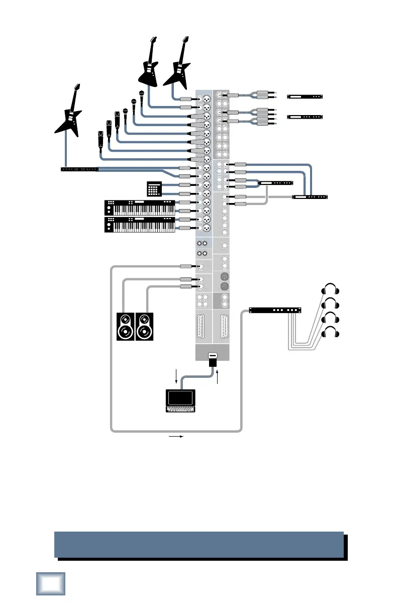 Sixteen channels are recorded to the laptop, and two mixdown channels