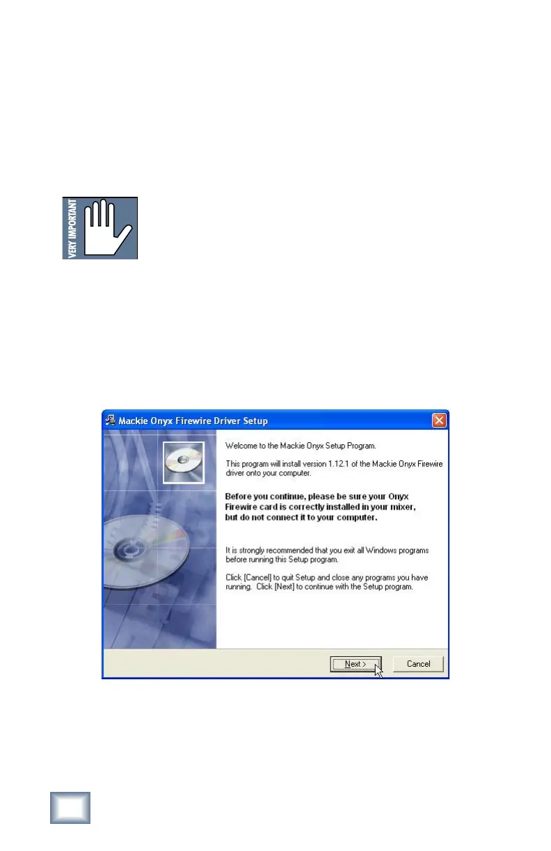 When connecting the Onyx FireWire card to a PC, it is necessary to rst install