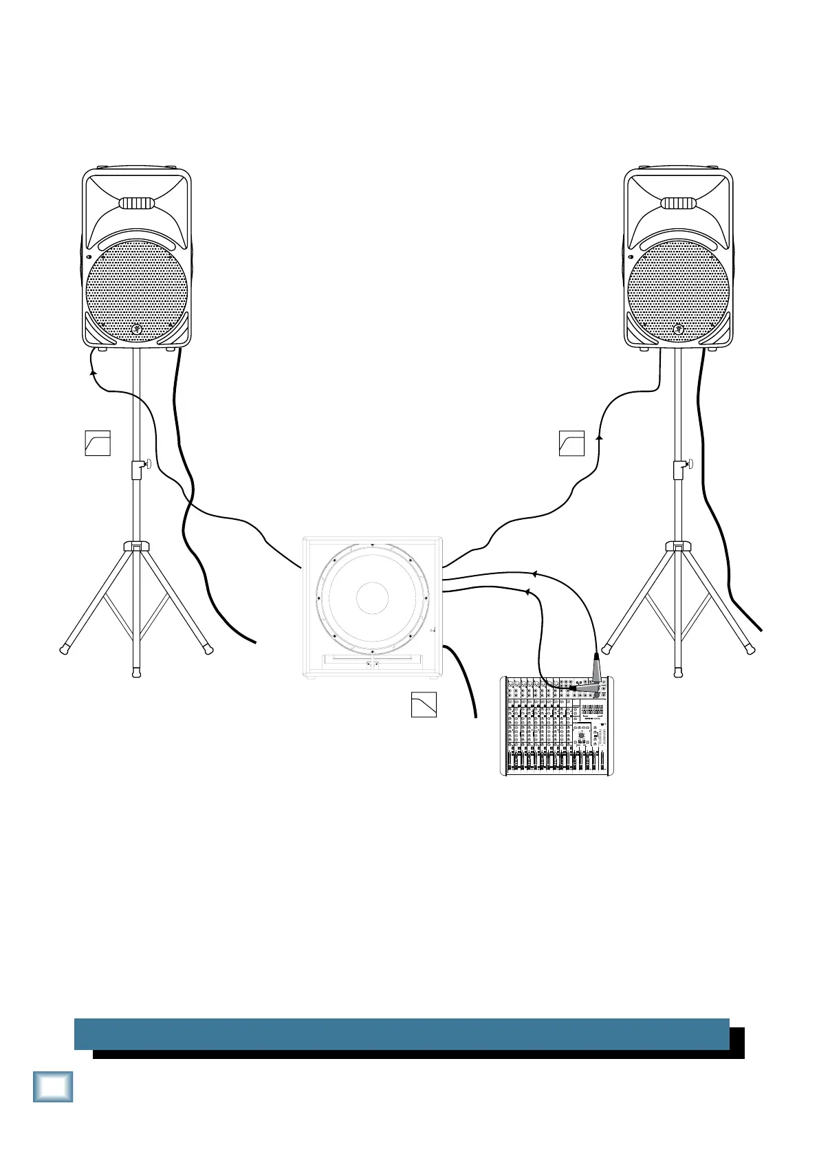 This diagram shows the left and right line level outputs of a Mackie CFX12mkII mixer feeding inputs