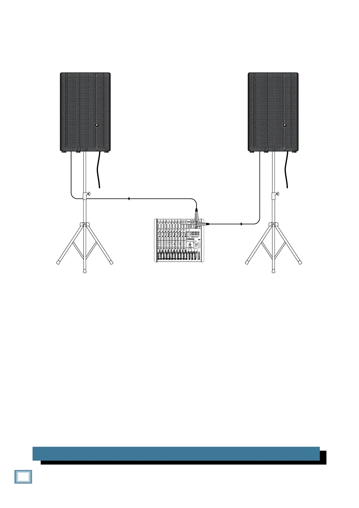 In this example, the left and right main outputs from a mixer feed the MAIN INPUTs of a pair of Mackie HD1221