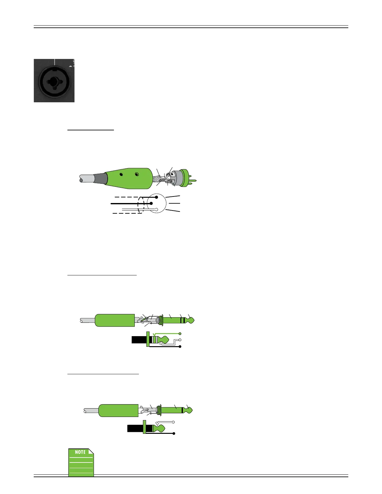 To connect unbalanced lines to this input, use a /4" mono (TS) phone plug, wired as follows: