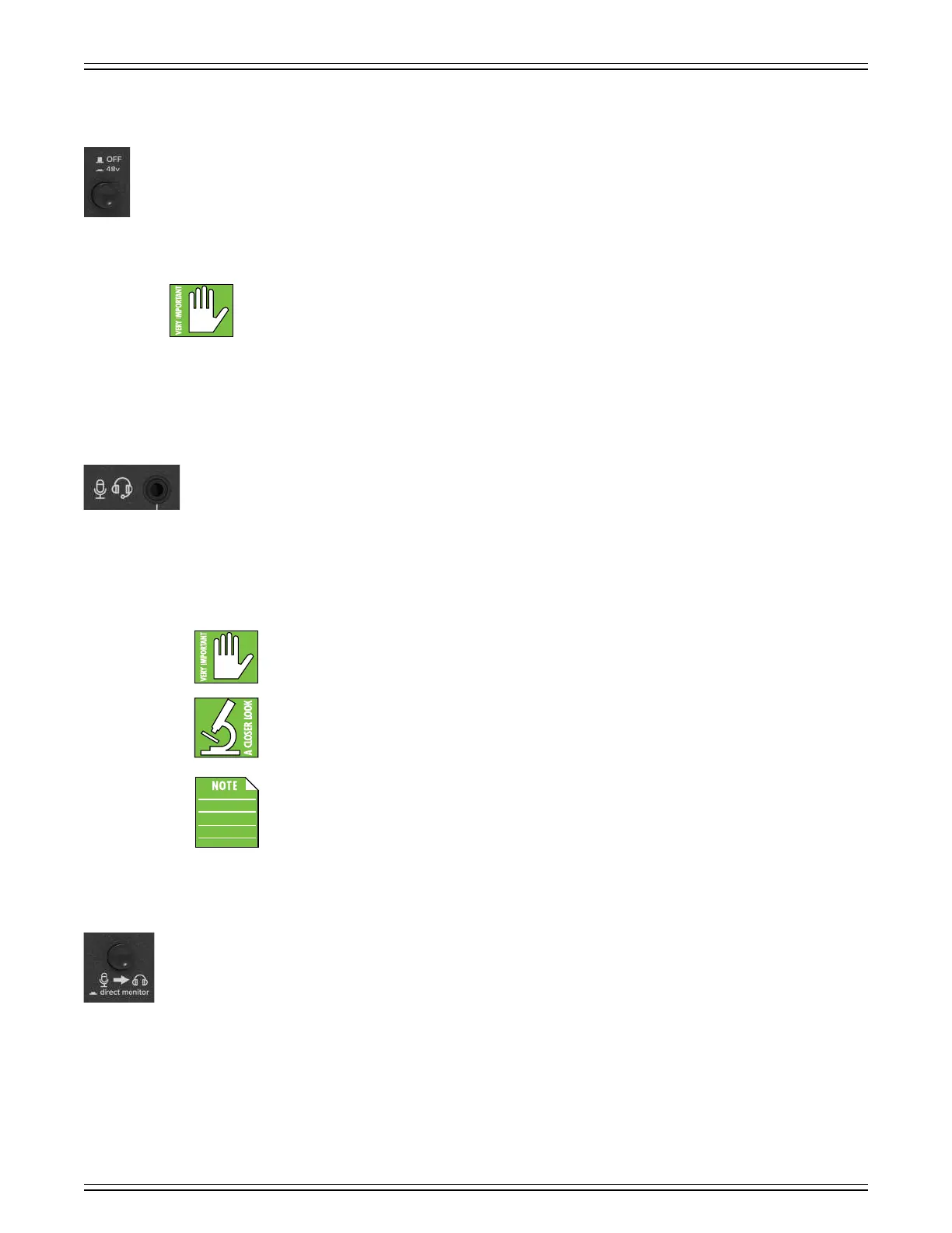 is engaged) when connecting a microphone to the mic input when phantom power is turned on to prevent