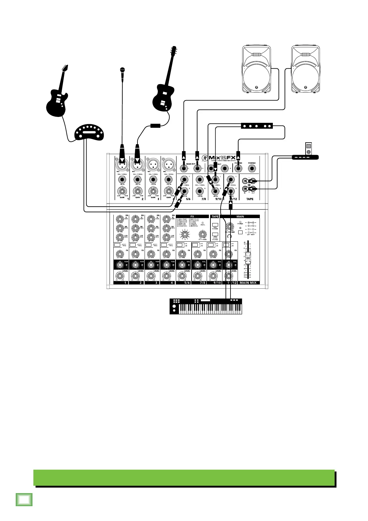 2 mic input via Direct Injection (DI), the lead guitar plays through a stereo effects processor plugged into