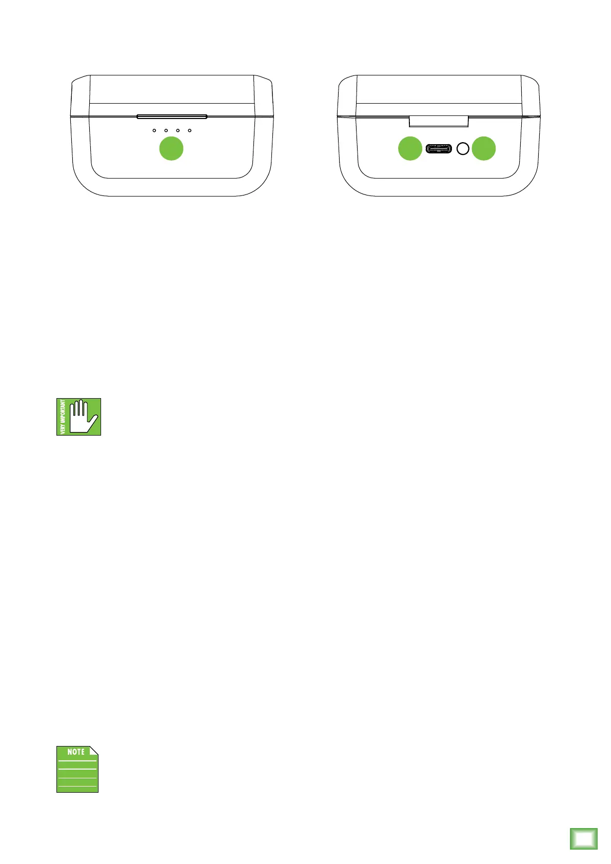 LED solid green – Lef earbud is fully charged.