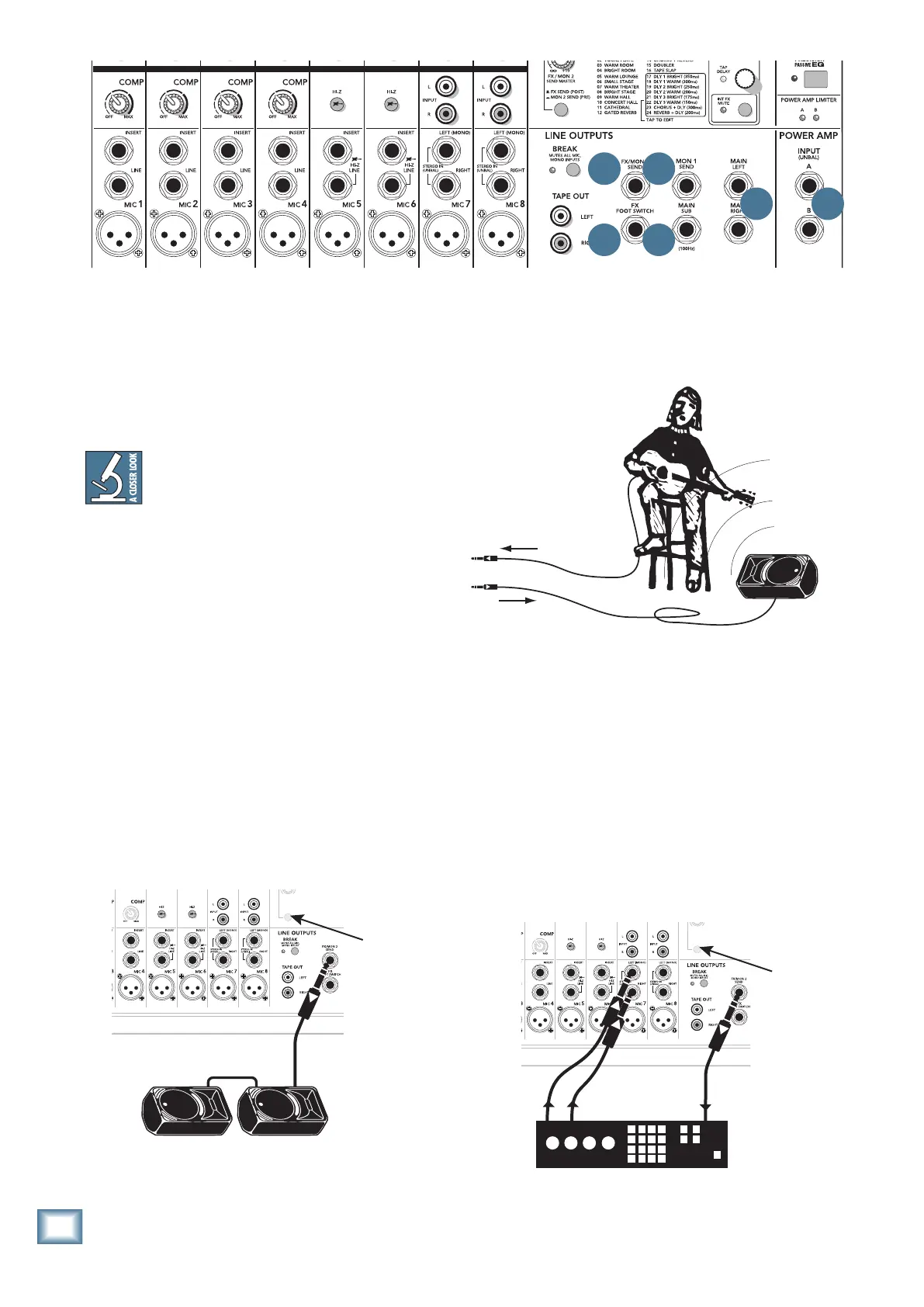example, the stereo outputs go to ch. 7 stereo inputs.