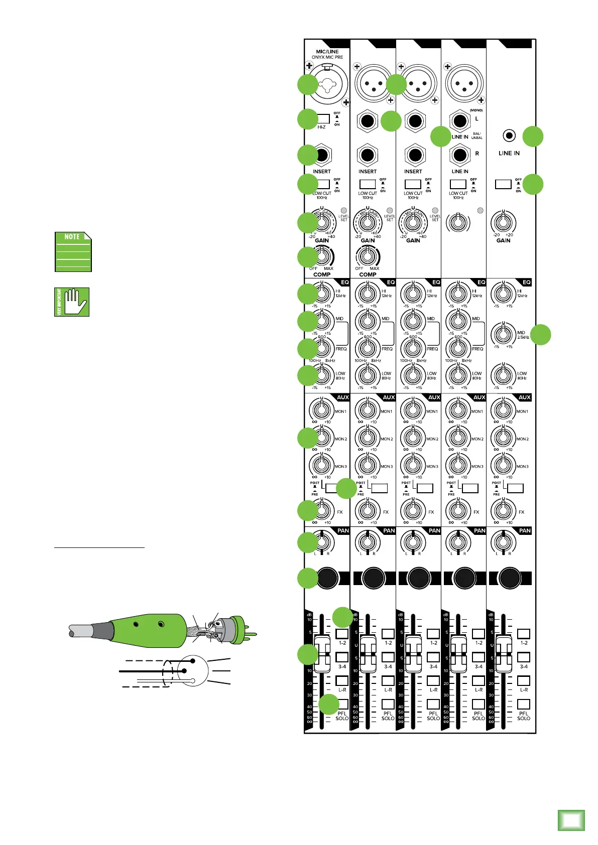 Mackie ProFX12v3 - Front Panel Features - Inputs; Phantom Power; XLR and 1;4 Combo Inputs