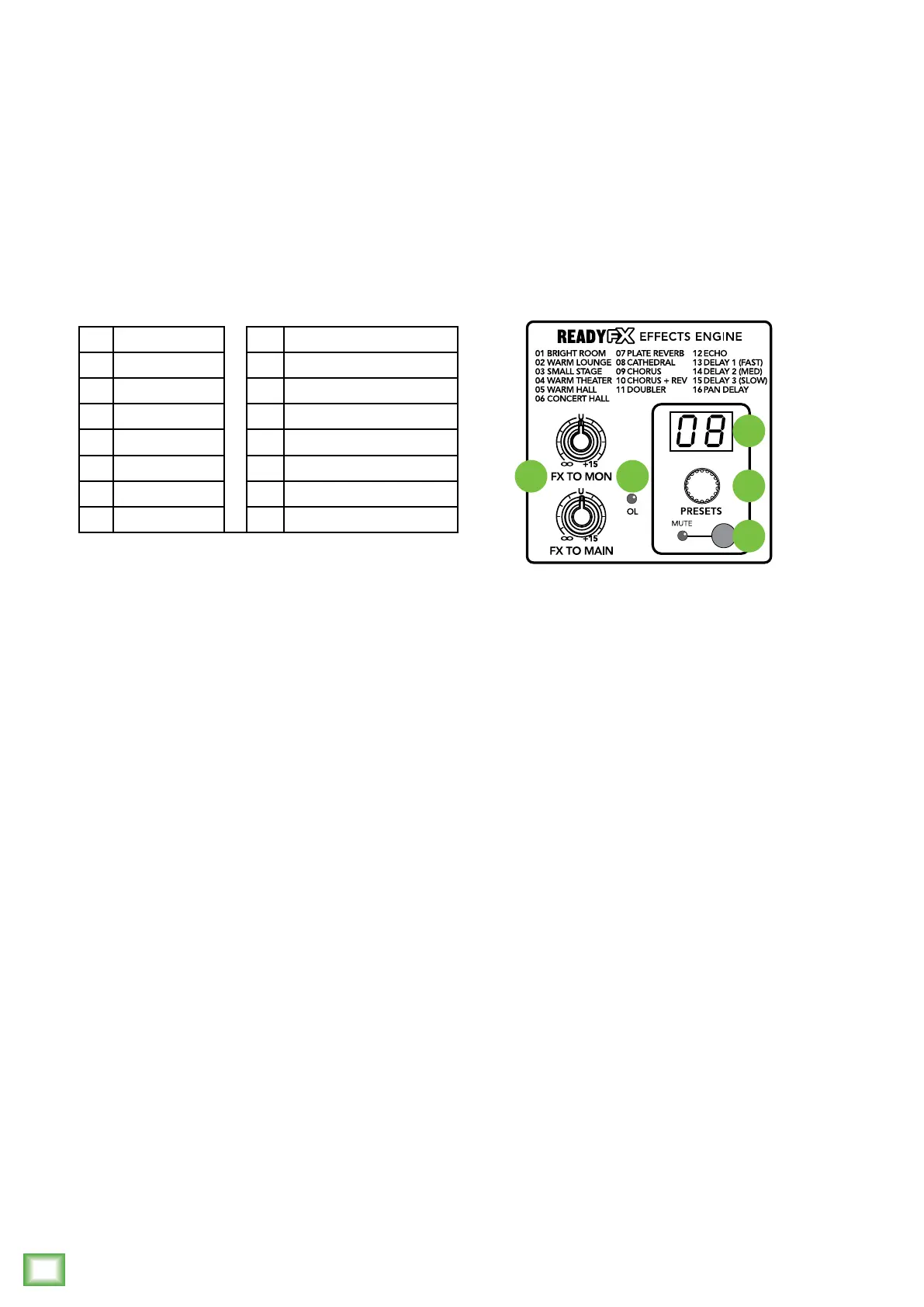 presets are shown in the table below and on the mixer's