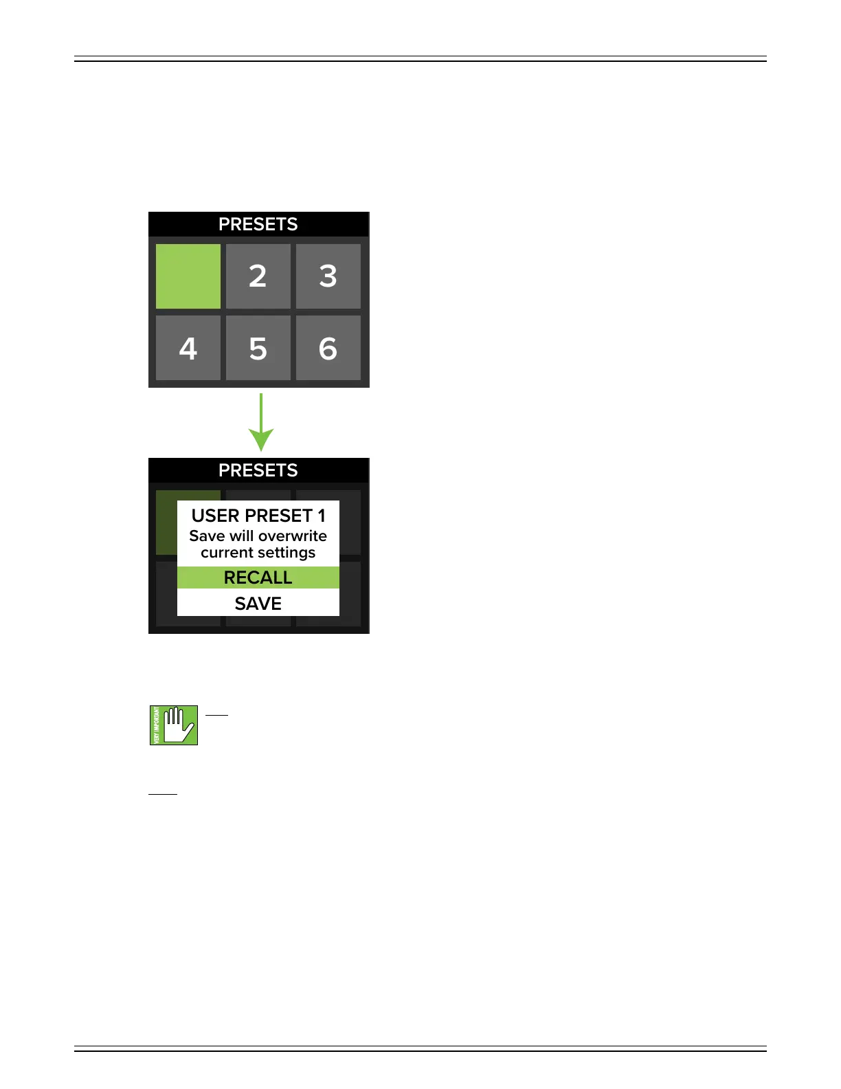 Recall – Select this to recall the settings of the corresponding preset.