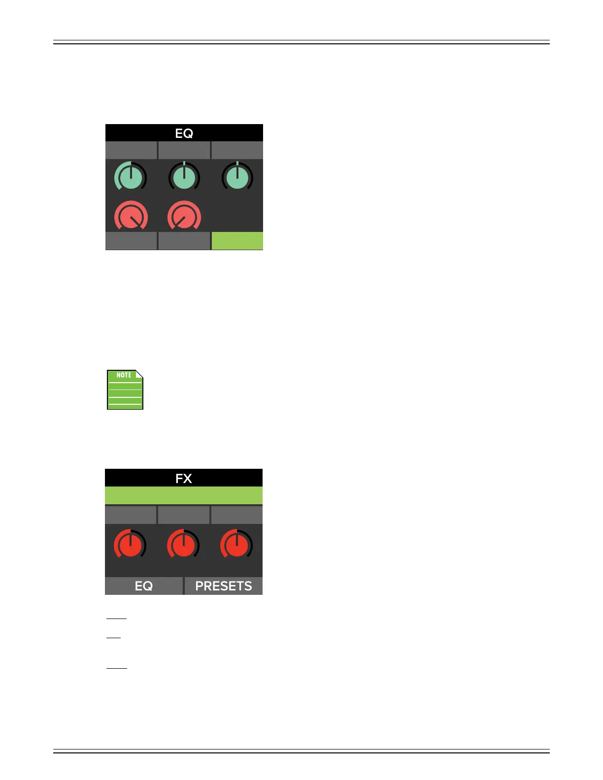 A few pages ago, we were looking at the FX EQ section. In addition to the changeable parameters – frequency, width, gain,