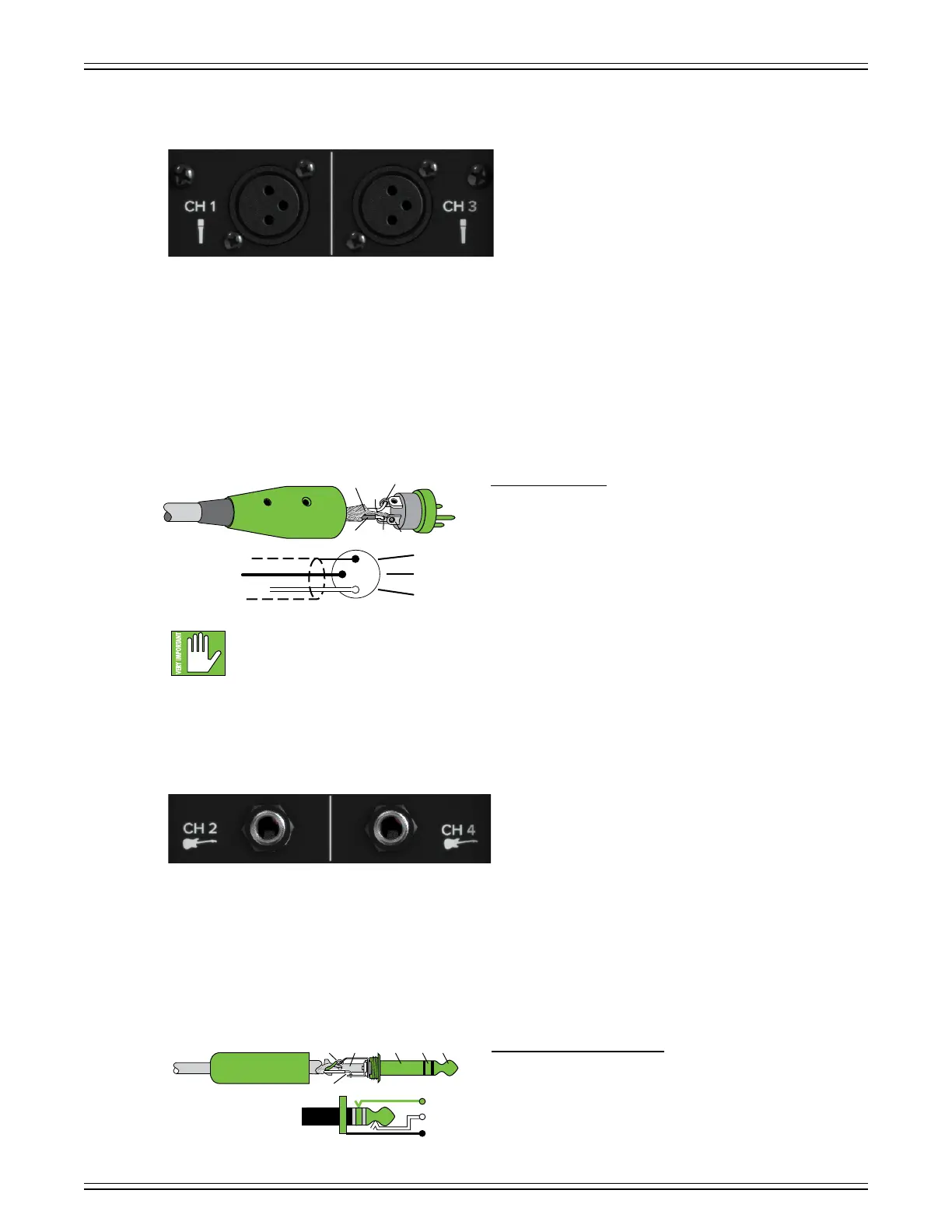 Channels 2 and 4 may accept /4" instrument level sources. These inputs will always be Hi-Z inputs that utilize DSP for auto