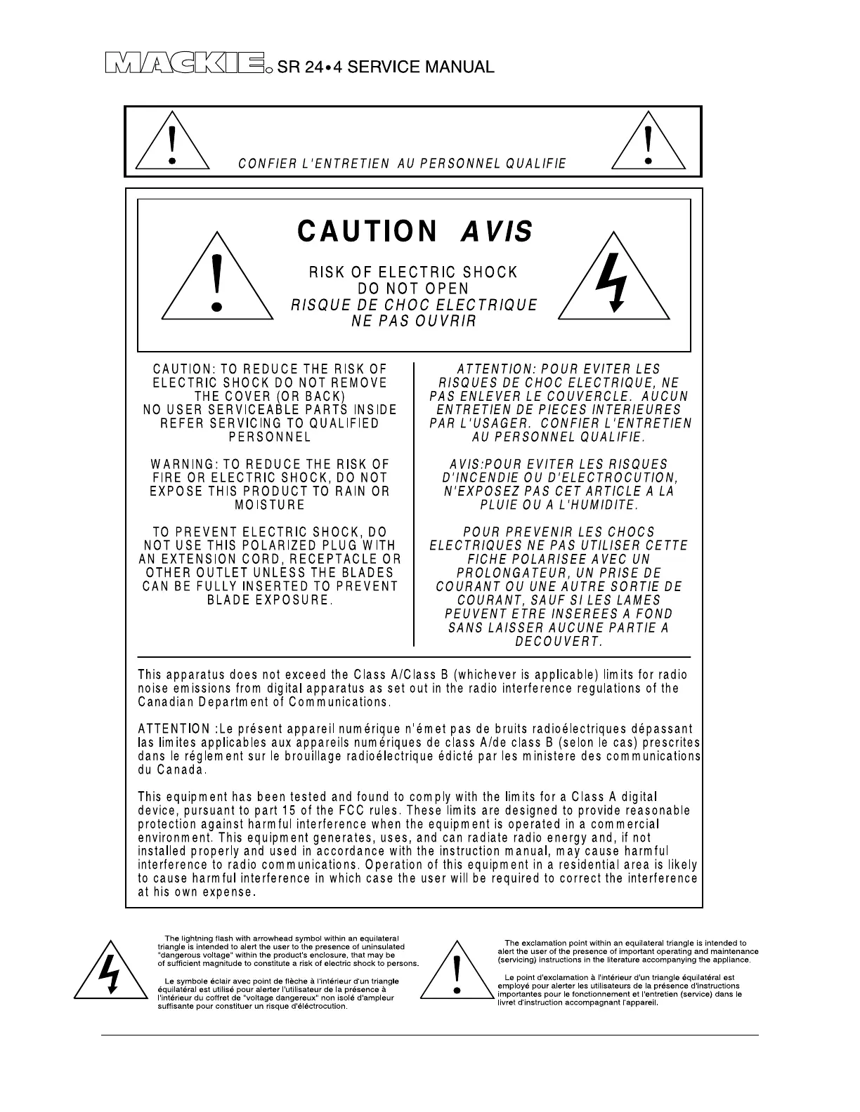 Mackie SR24•4 - Safety Precautions and Compliance; Electrical Shock and Fire Hazards; Plug and Outlet Safety; Radio Interference Regulations