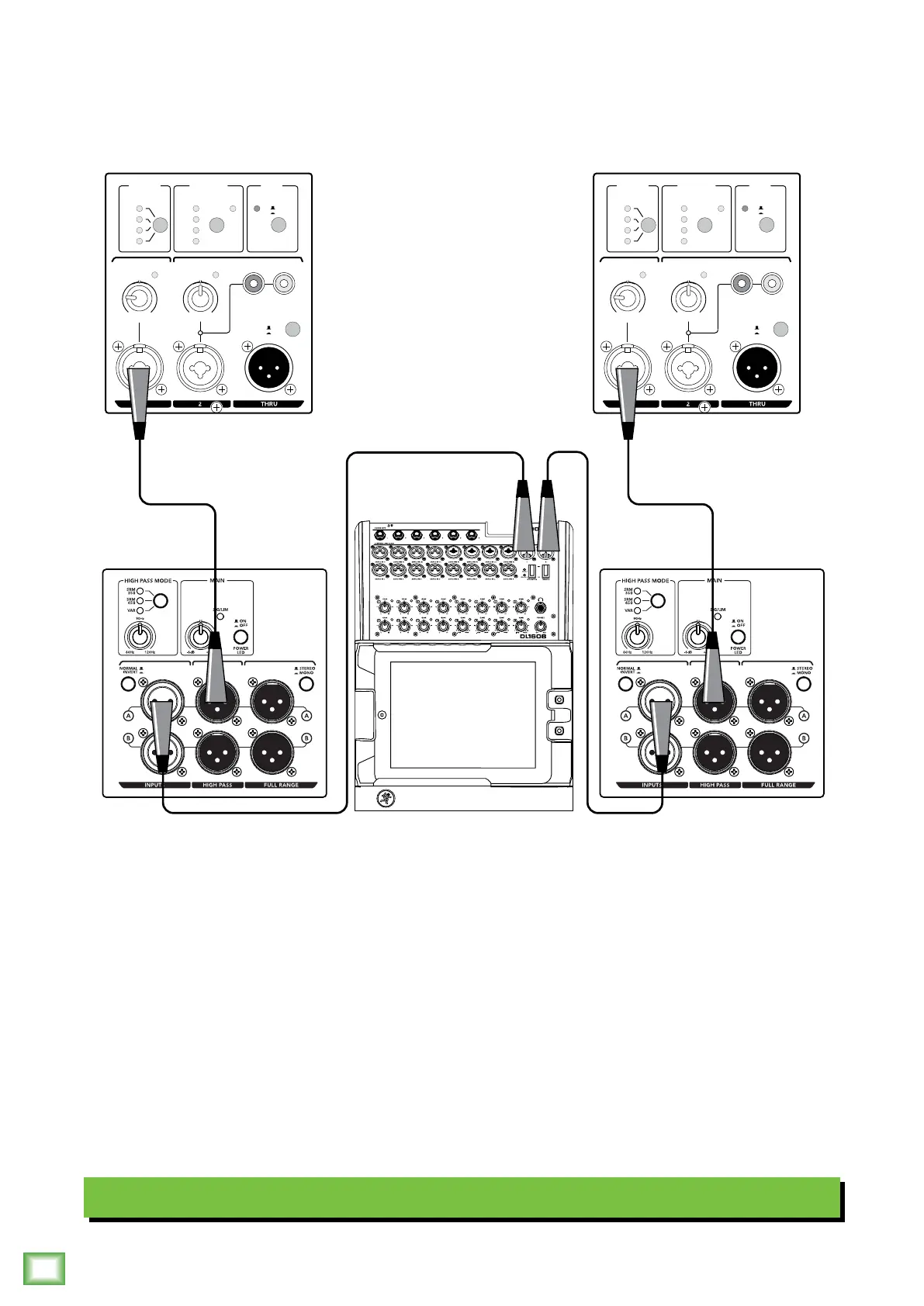 subwoofer. The channel A high pass output of each SRM1550 subwoofer is connected directly to the