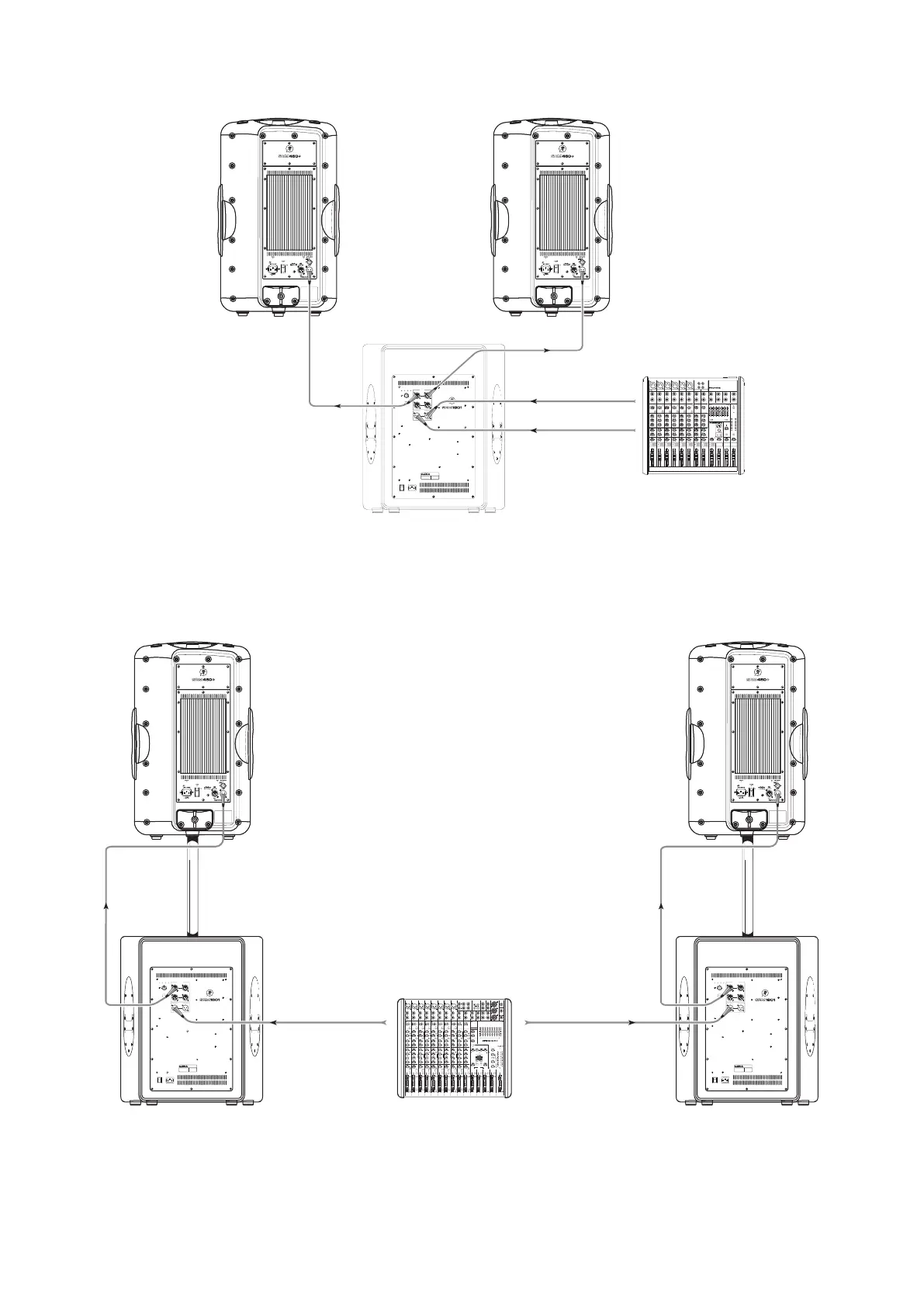 subwoofers. The high pass line-level outputs of the subwoofers feed the inputs of the Mackie SRM450v2
