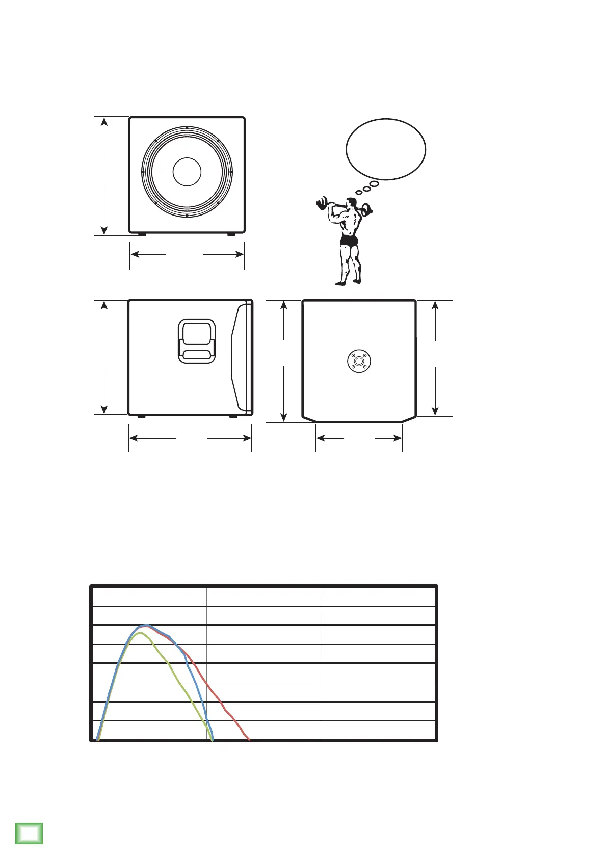 Mackie SRM2850 - SRM1850 Subwoofer Dimensions; SRM1850 Subwoofer Frequency Response