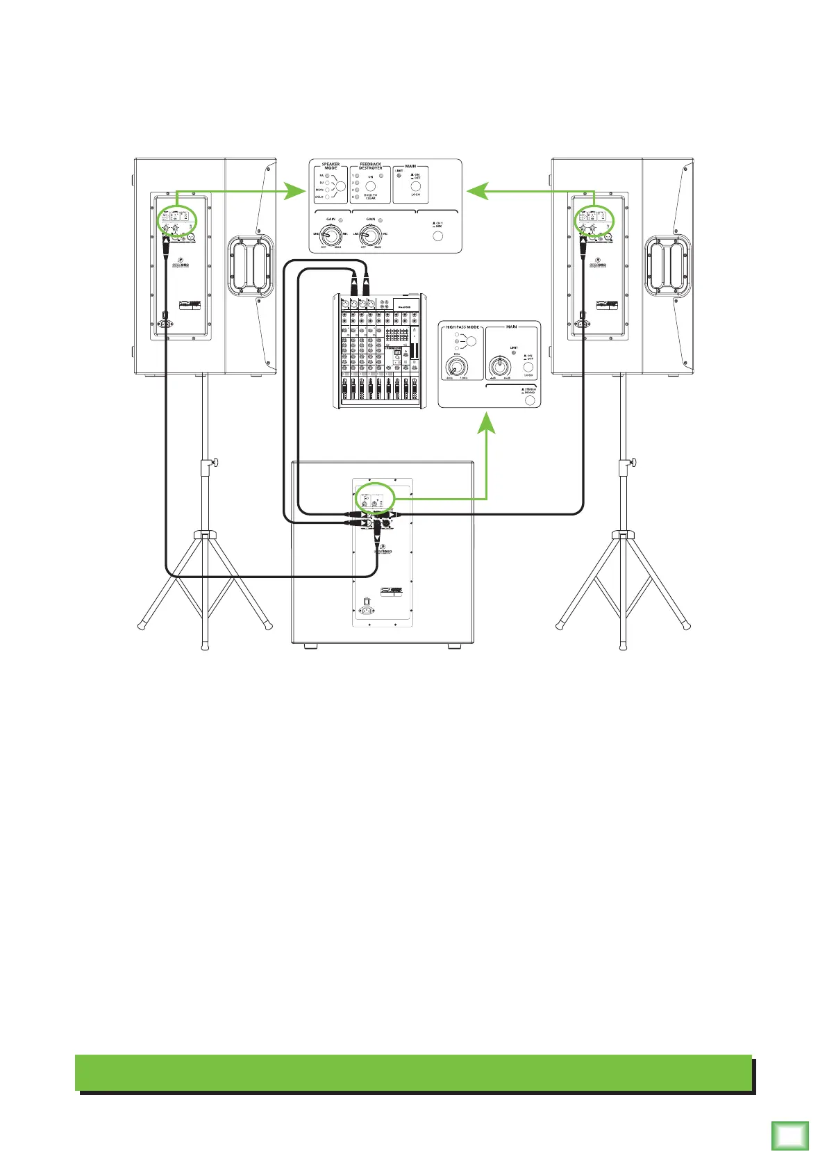 1 inputs of each SRM650 loudspeaker. Be sure that the gain knob on each is set to “line” or get ready to