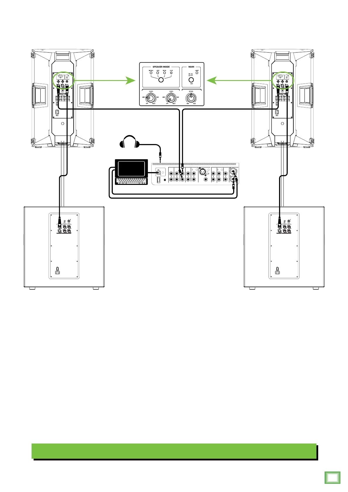 The Mix Out of each loudspeaker is connected to the channel A input of each Thump18S subwoofer.