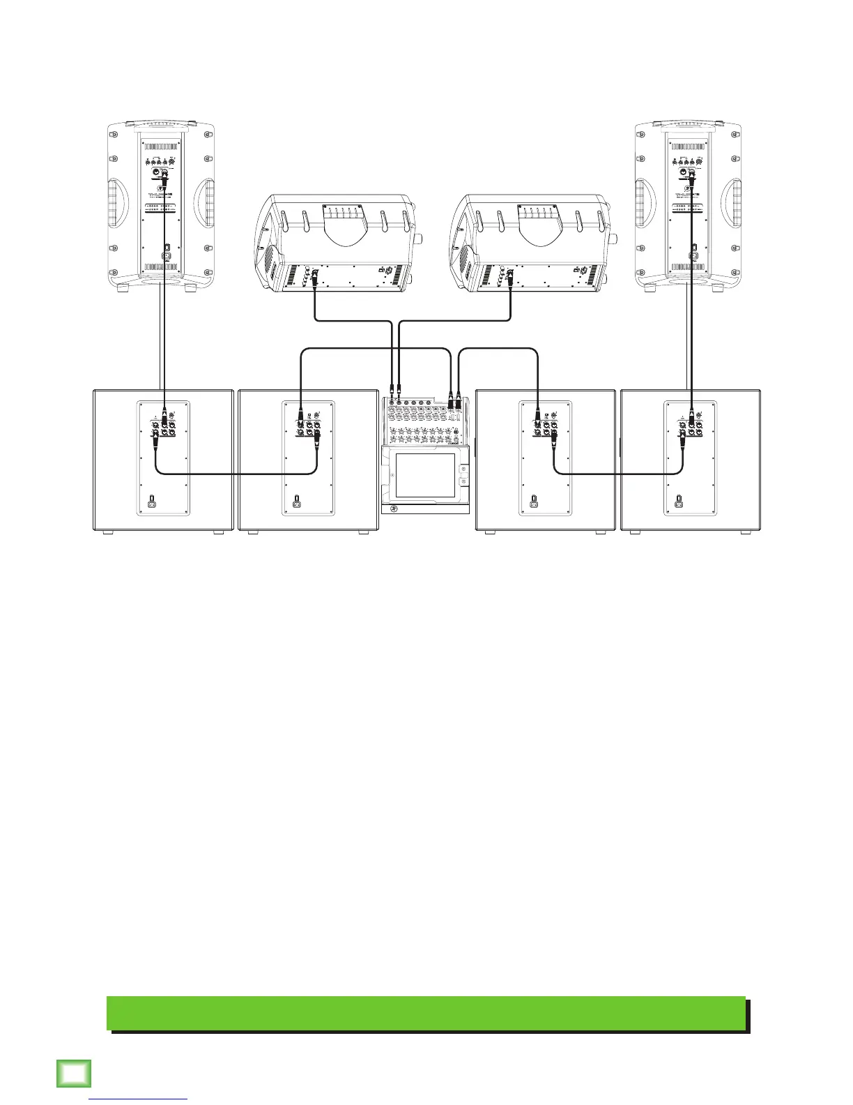 The channel A high pass outputs of the last two Thump18S subwoofers are connected directly to the