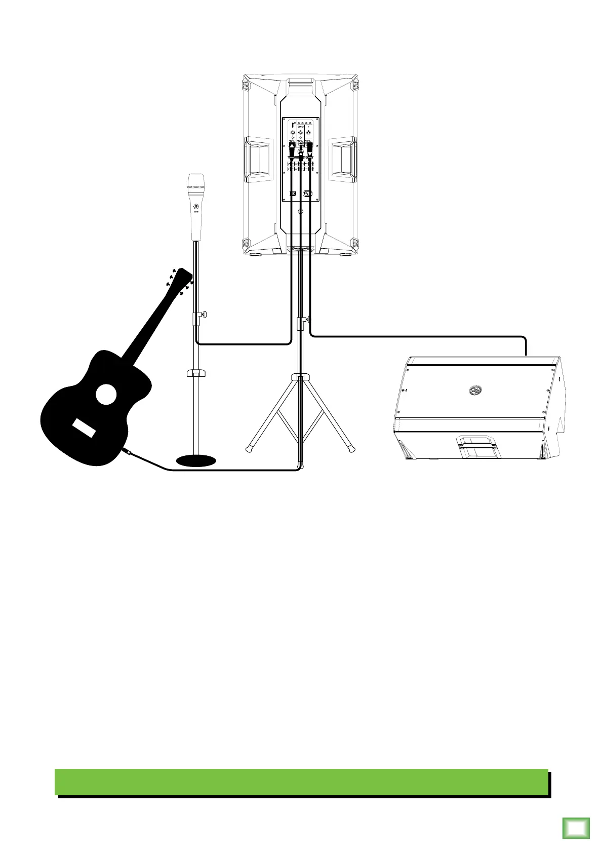 as the main PA. The Channel gain knob should be set to Mic. The Mic/Line switch should be ENGAGED [Mic], as well.