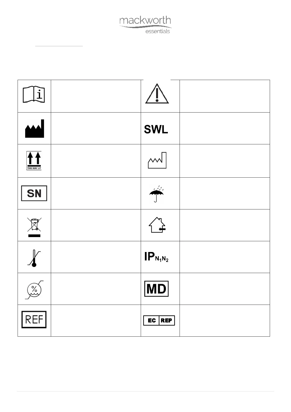 The Table below includes all Symbols from BS EN ISO 15223-1:2016 that can be found in this Manual and on the Product and