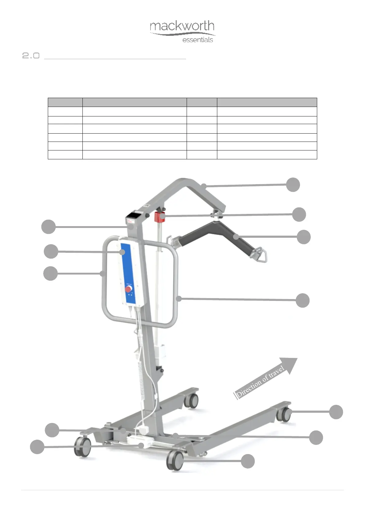 Please see below to familiarise yourself with the components of the Mackworth Essentials 180 Mobile Hoist. The image below