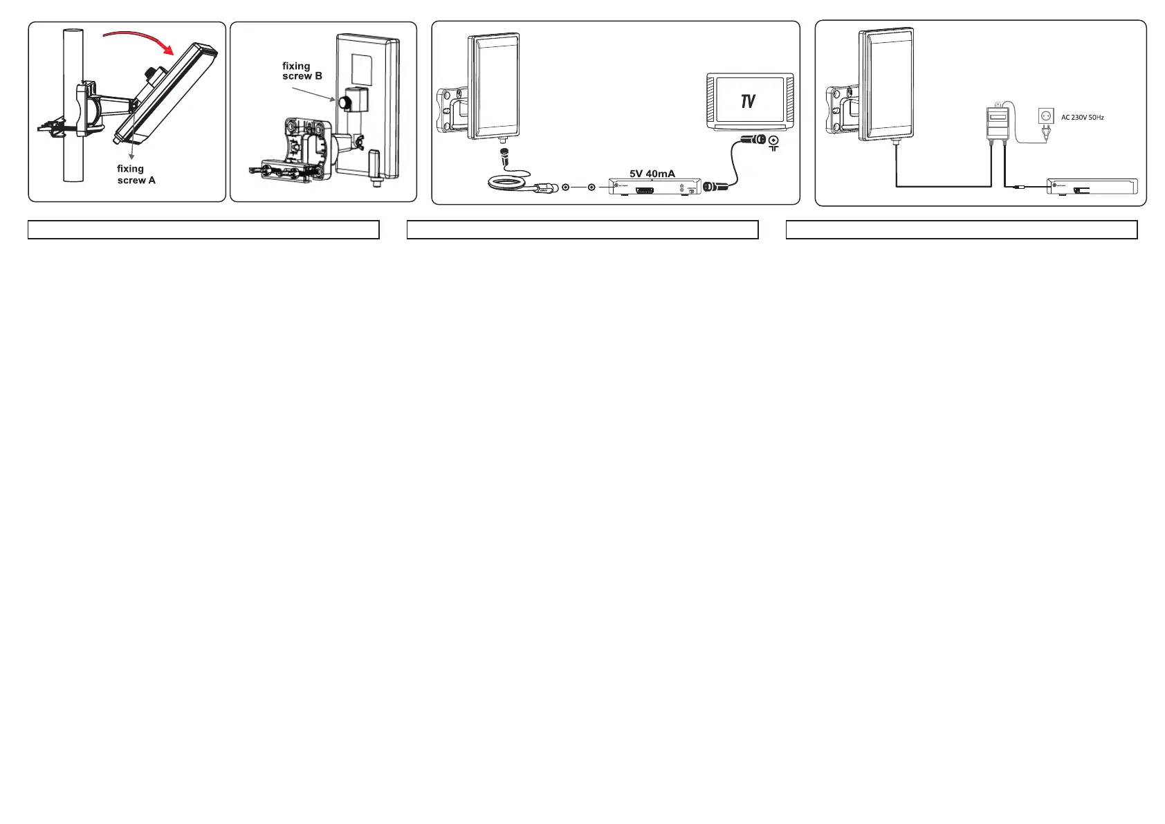 AC-stopcontact. Stap5. Stel de antenne in de beste positie voor een helder tv-beeld en bevestig vervolgens de