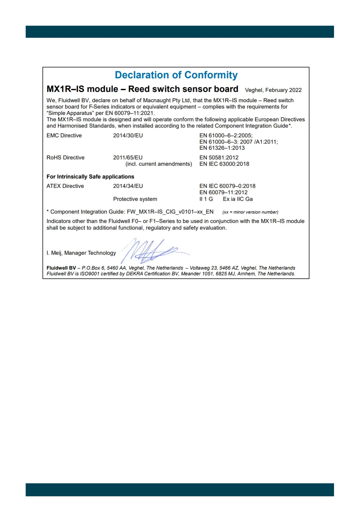 Declaration of Conformity (Simple Apparatus PCB)