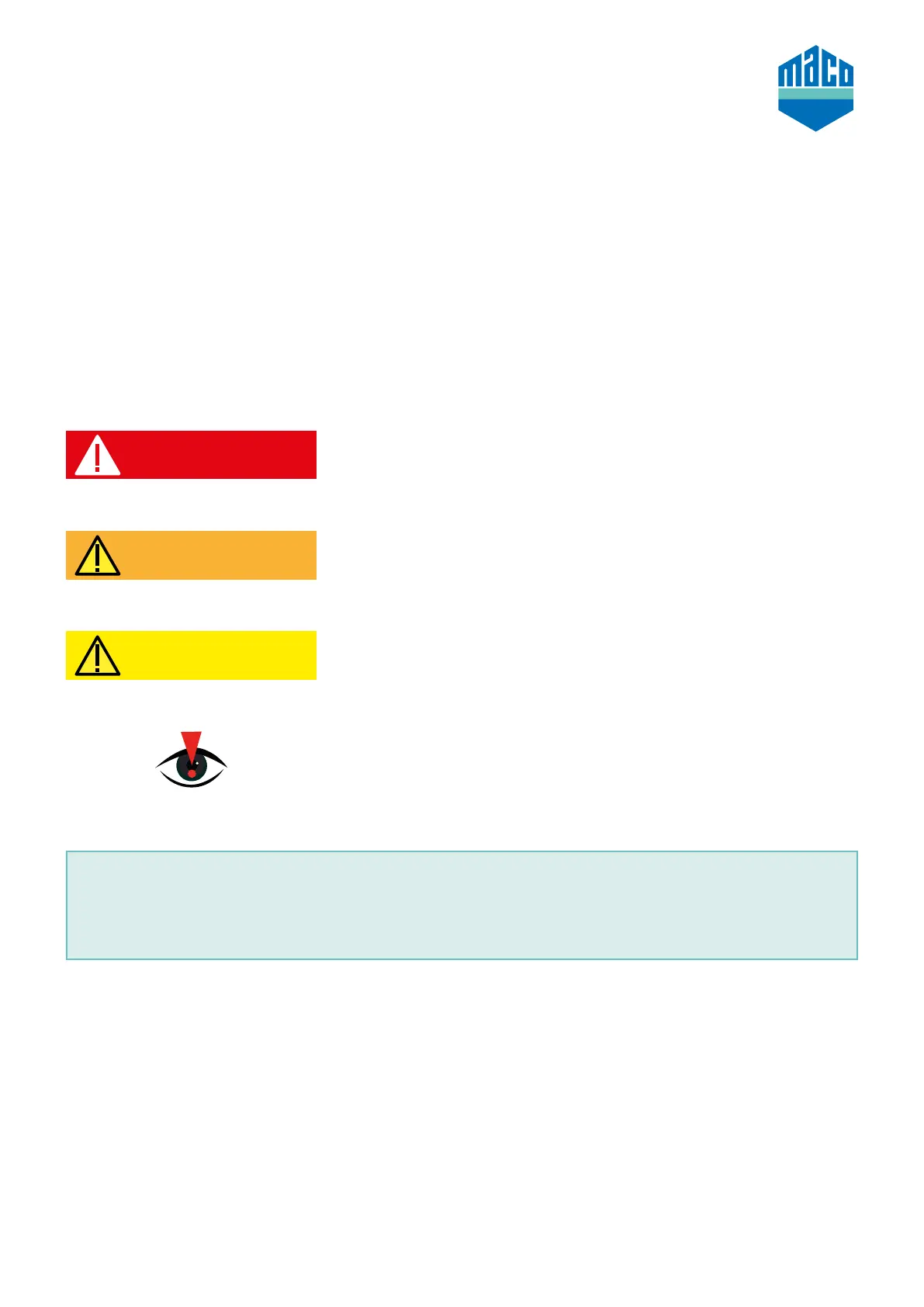 When reading this document and the safety instructions, please note the following signs and colours: