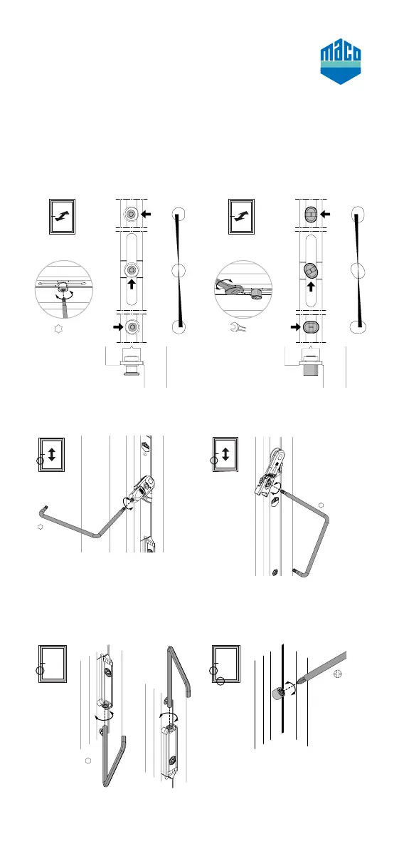 Maco MULTI-MATIC - Setting the Closing Element, Bullet Catch, and Sash Lifter; Gasket Compression on Cam; Sash Lifter Adjustment; Door Catch;Bullet Catch Roll Setting