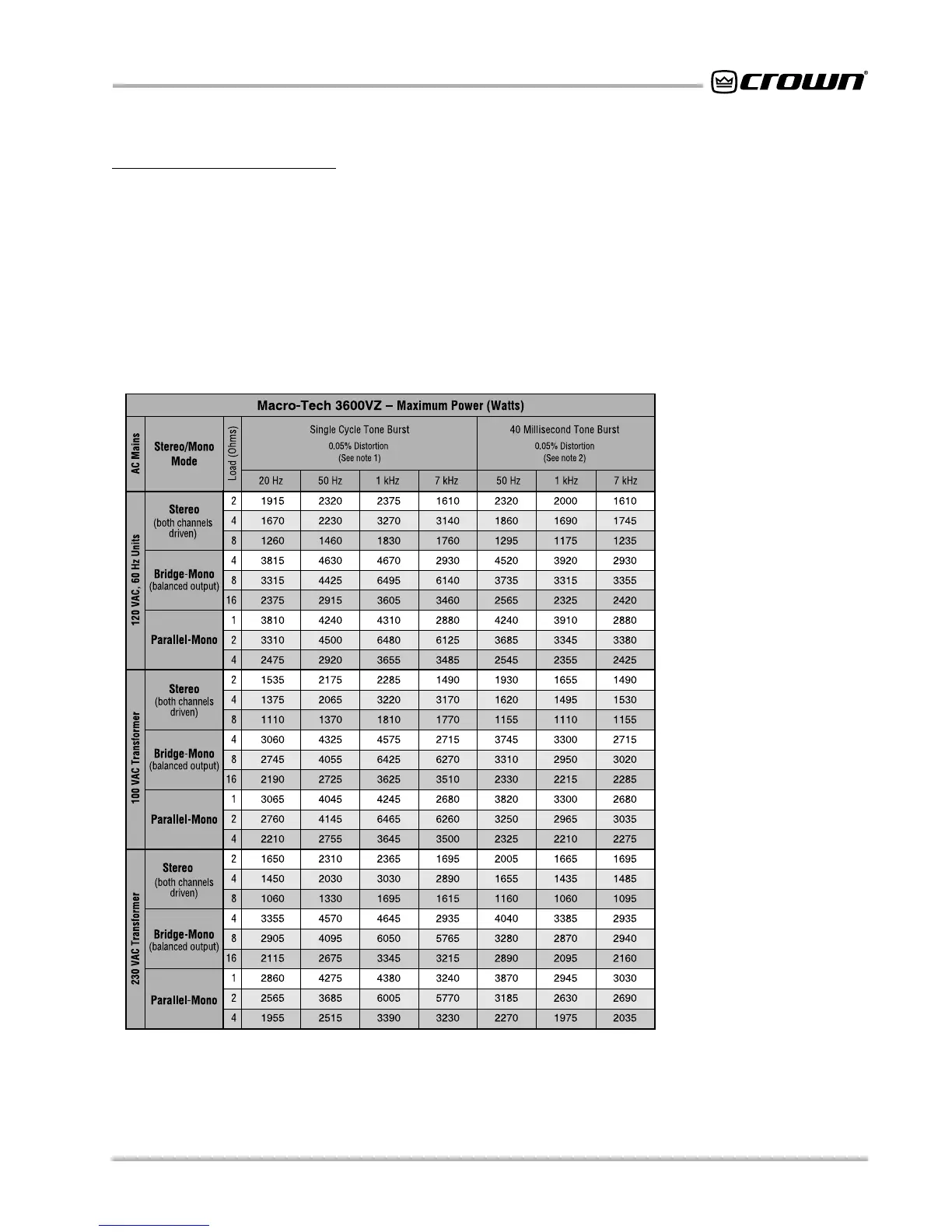 Crown’s maximum power specifications represent the largest amount of output power you can expect from your