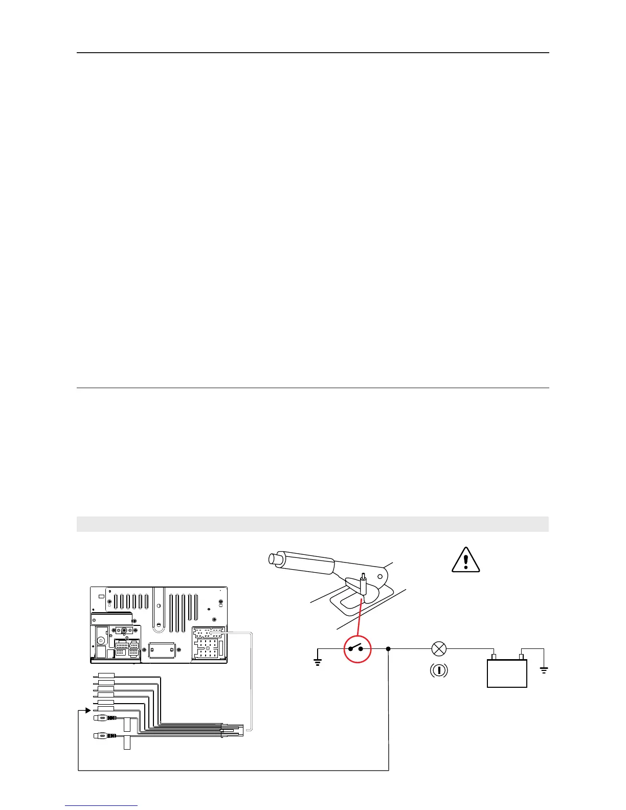 • Connect the cable "BRAKE" to the parking brake switch to view video files on the TFT monitor.