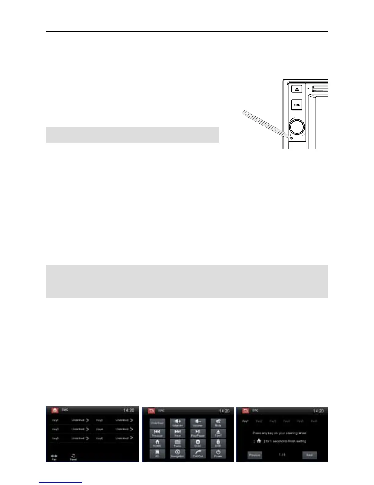 2. Touch [ SWC ], the SWC menu will display.