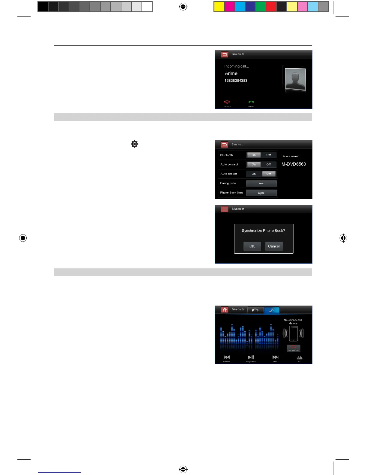 ∙ [Phone book sync]: To synchronize phone book, touch