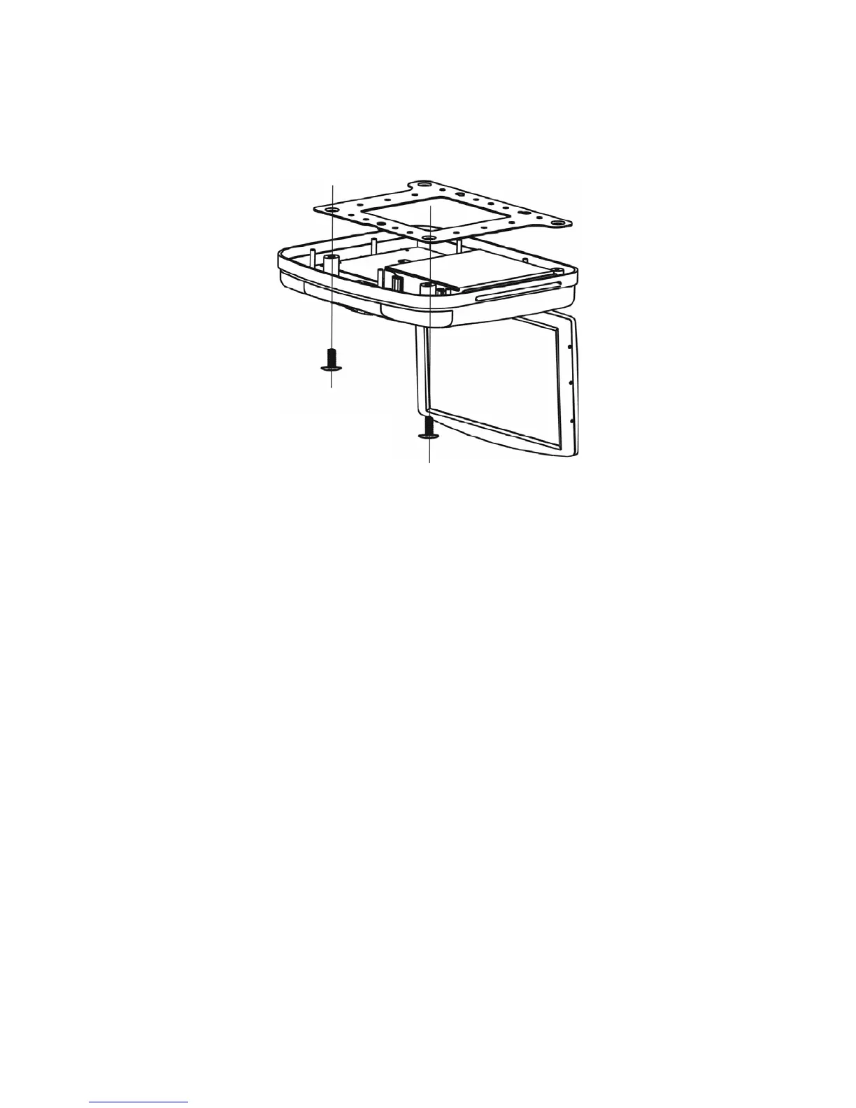 9. Attach the DVD player to the metal mounting plate using the CM 4x8 screws.