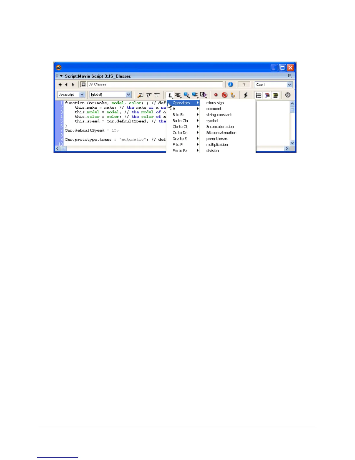 • From the Script Syntax pop-up menu, select either Lingo or JavaScript.
