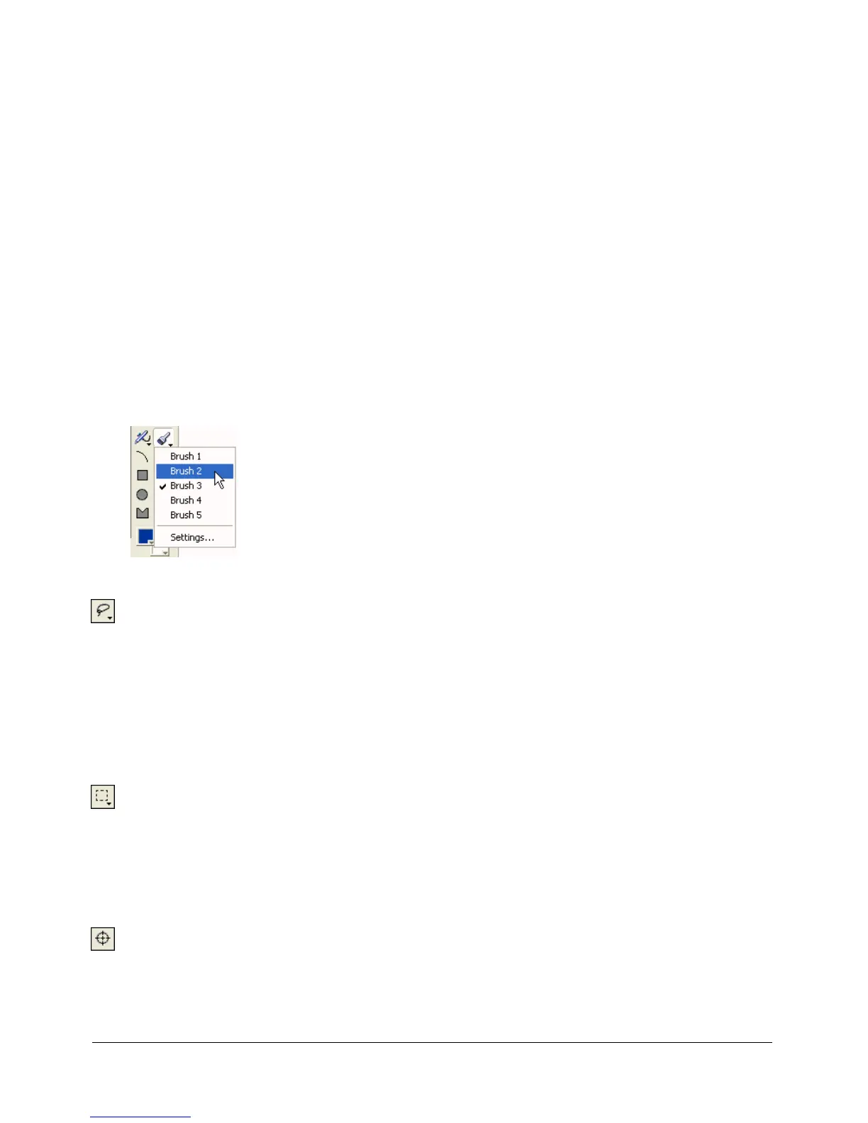 button to display a pop-up menu of options for that tool.