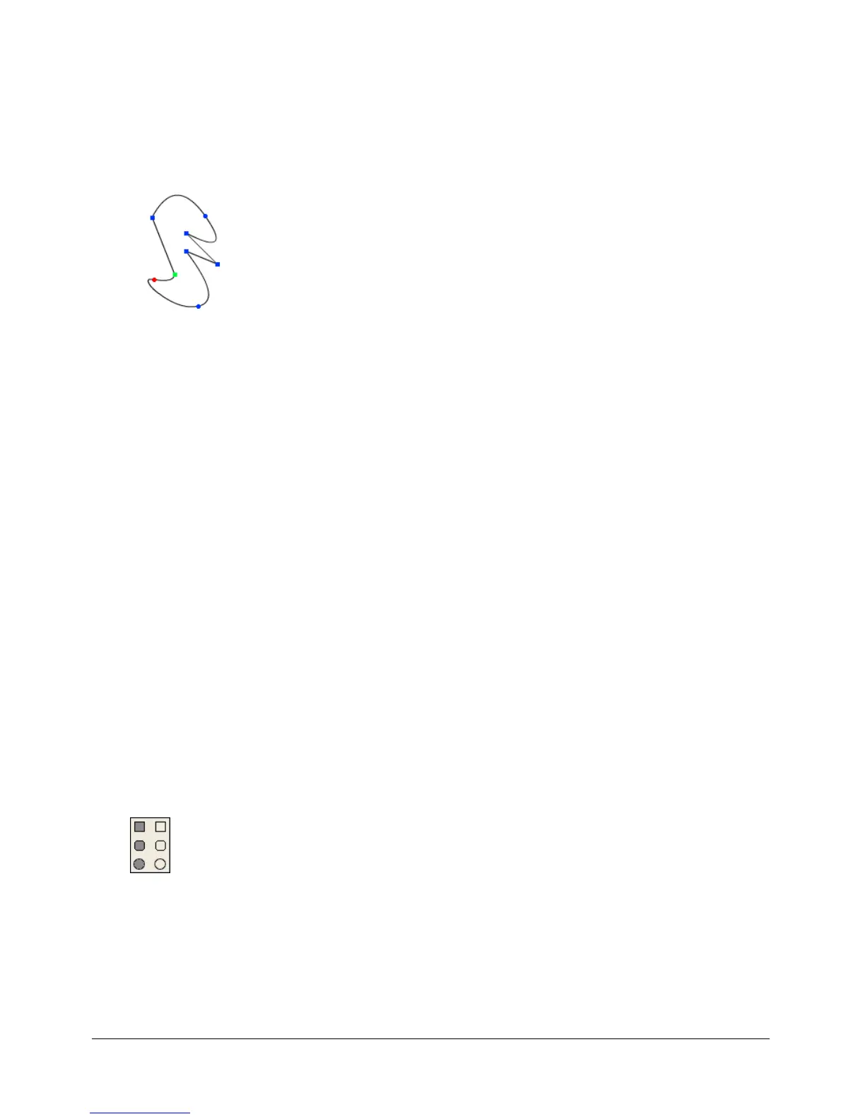 • The first vertex in a curve is green.