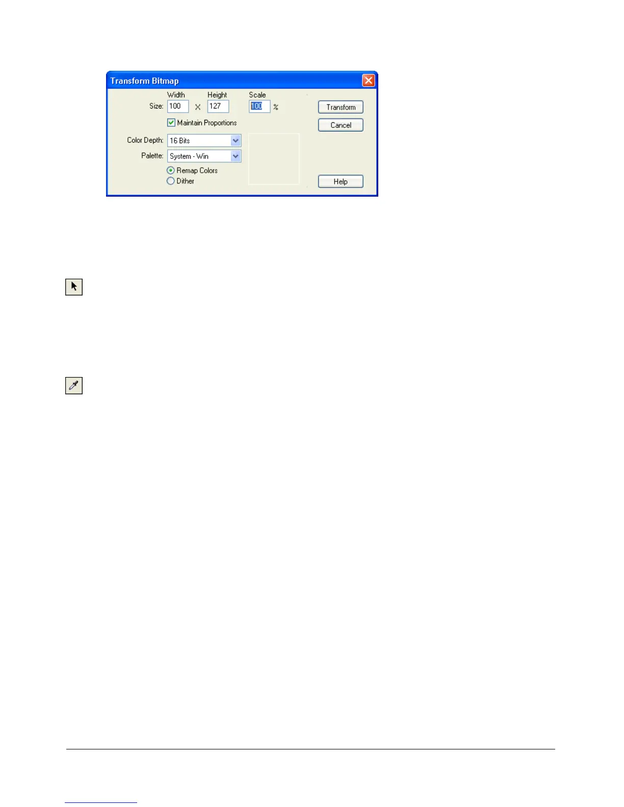 7 Select Modify > Transform Bitmap and select the desired options.
