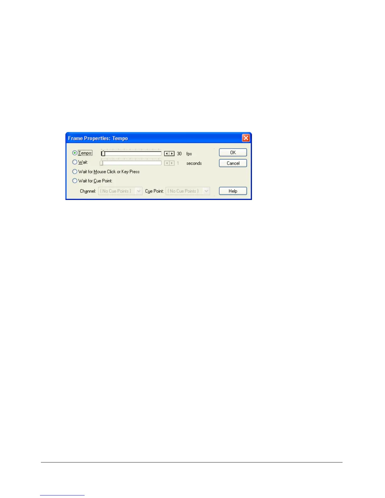 2 Select the option you want to use in the Frame Properties: Tempo dialog box.