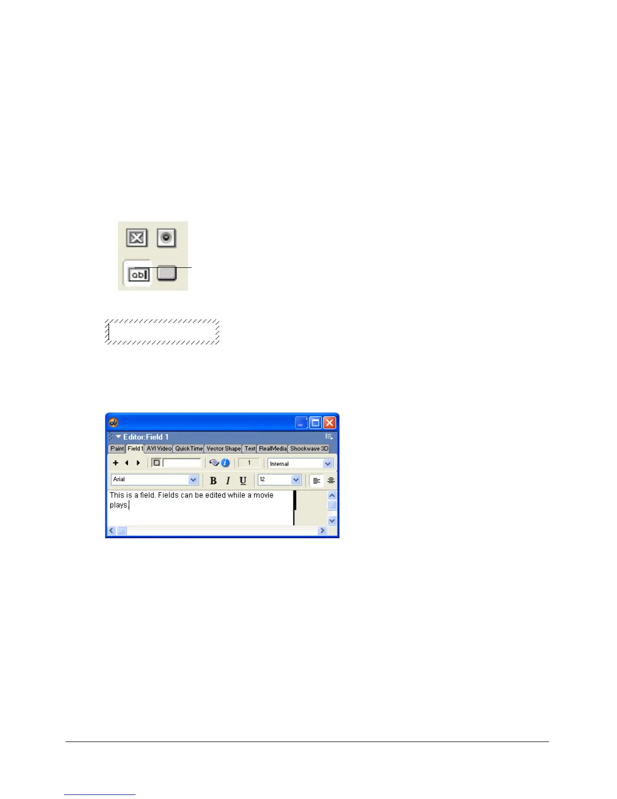 • Select Window > Field, or double-click a field cast member in the Cast window.