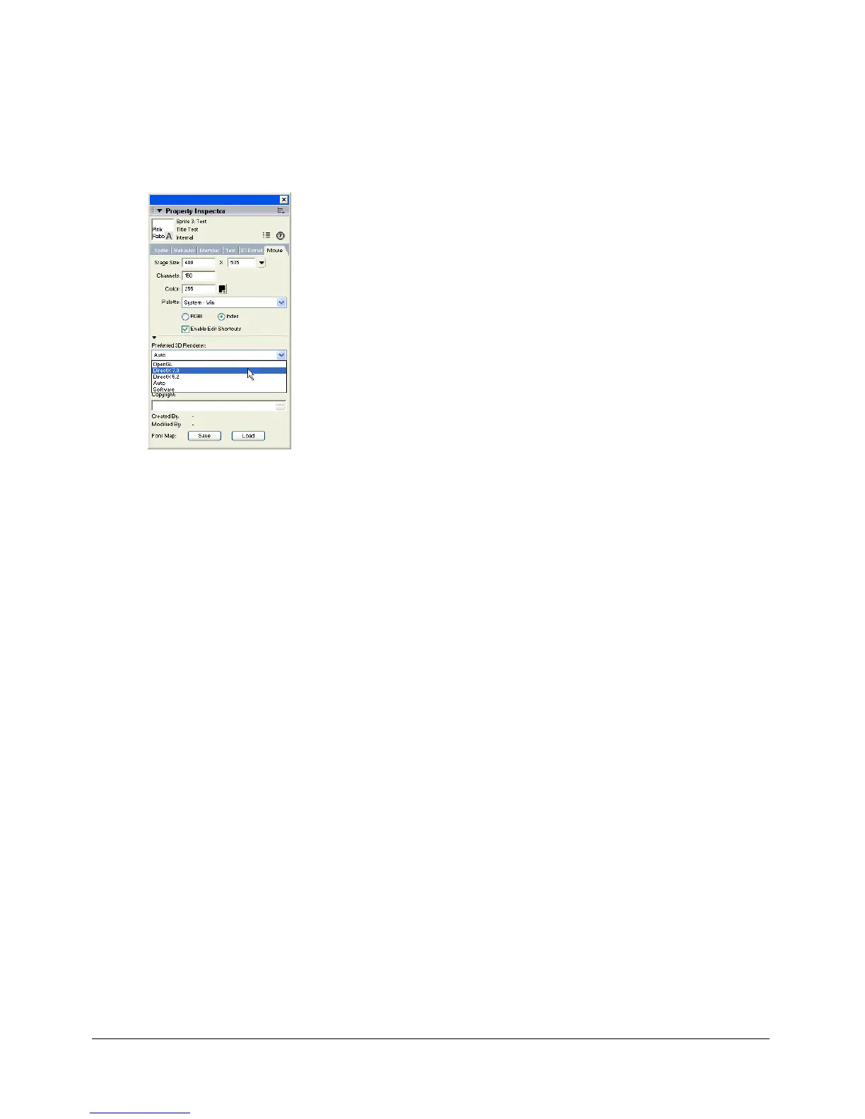 Below the pop-up menu, the name of the active 3D renderer property appears. The value of this